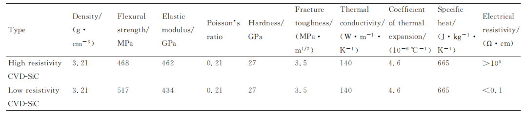 不同電阻率的CVD-SiC性能參數(shù)對比