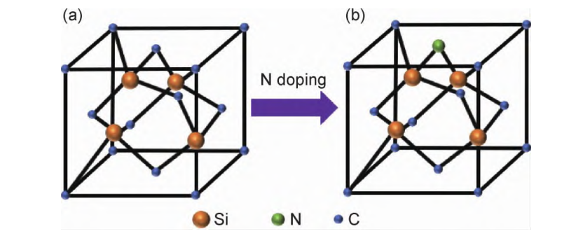 實現(xiàn)氮摻雜有以下兩種途徑:(1)在高溫燒結(jié)過程中液相燒結(jié)助劑溶解氮氣中的氮進入SiC晶格;