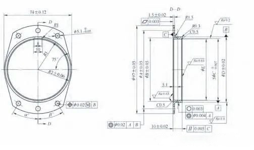 法蘭盤零件精度要求極高,尺寸相對較大,去除余量較多,壁厚較薄,剛性較差,材質易變形,加工制造過程中存在合格率偏低、質量不穩(wěn)定等問題,是非常典型的高精度、高要求難加工零件。